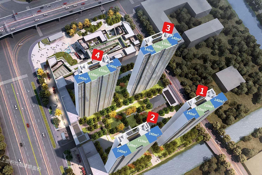 项目一共规划4栋高层(32层),主力户型2种,建面约110、140㎡,共计512套房。2022年会全部上市,大概分2次推盘。整个项目预计2024年交付。