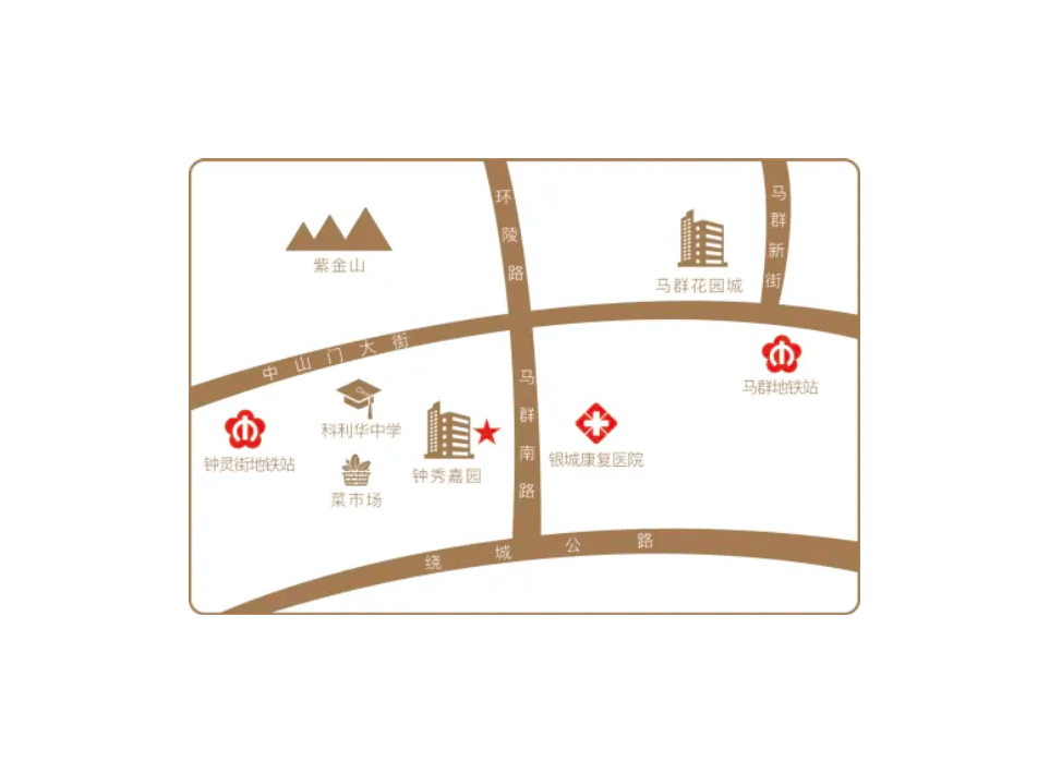 公交线路343路、312路、314路、距离地铁马群站、钟灵街站直线距离约1公里。
