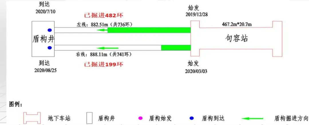 2、句容站~盾构井区间施工进展情况: