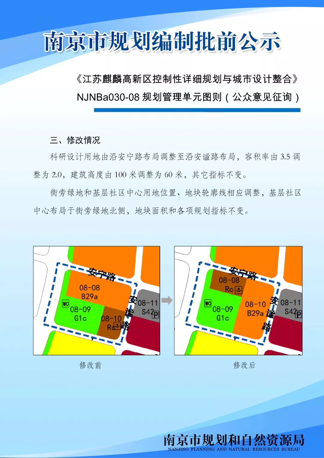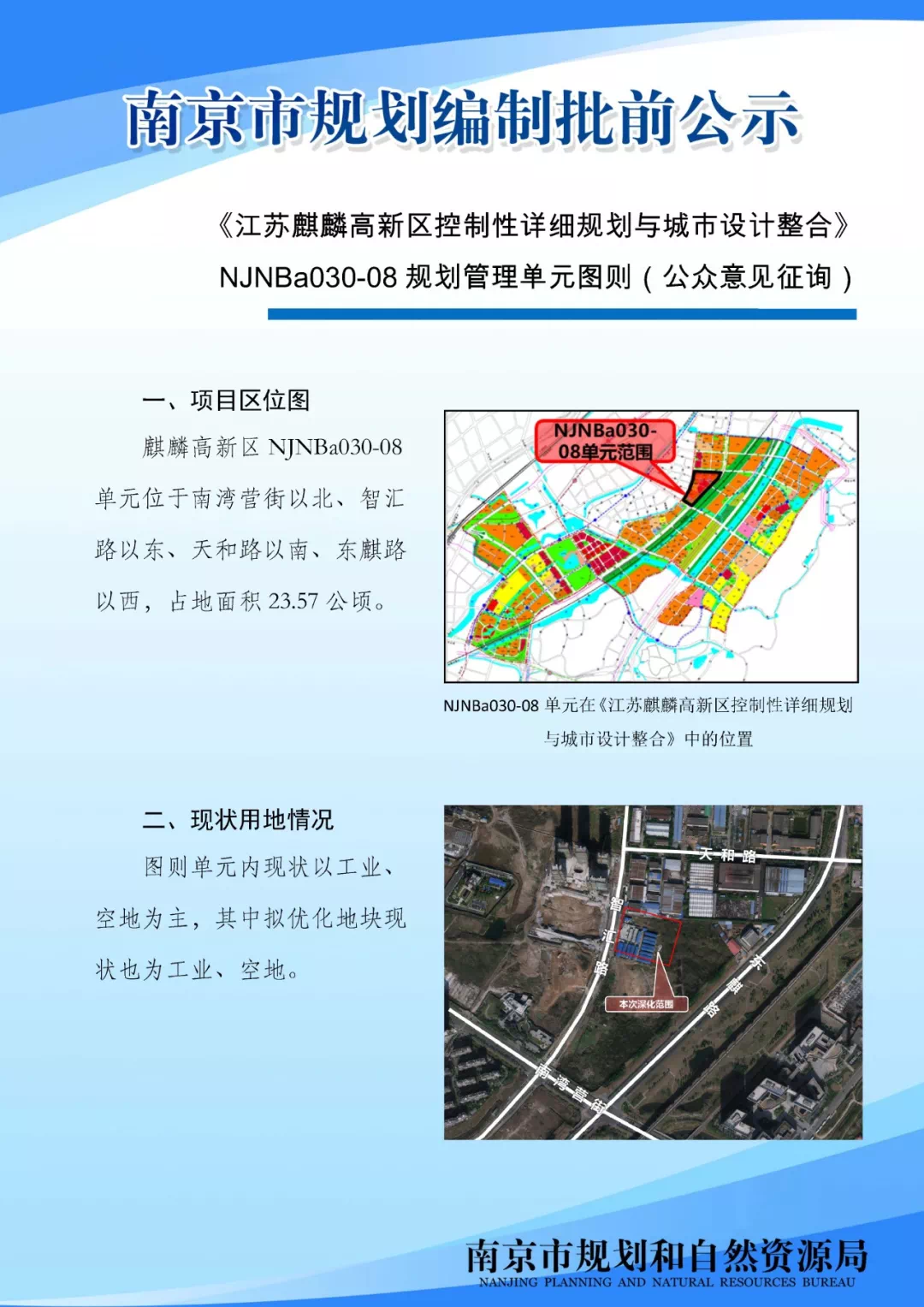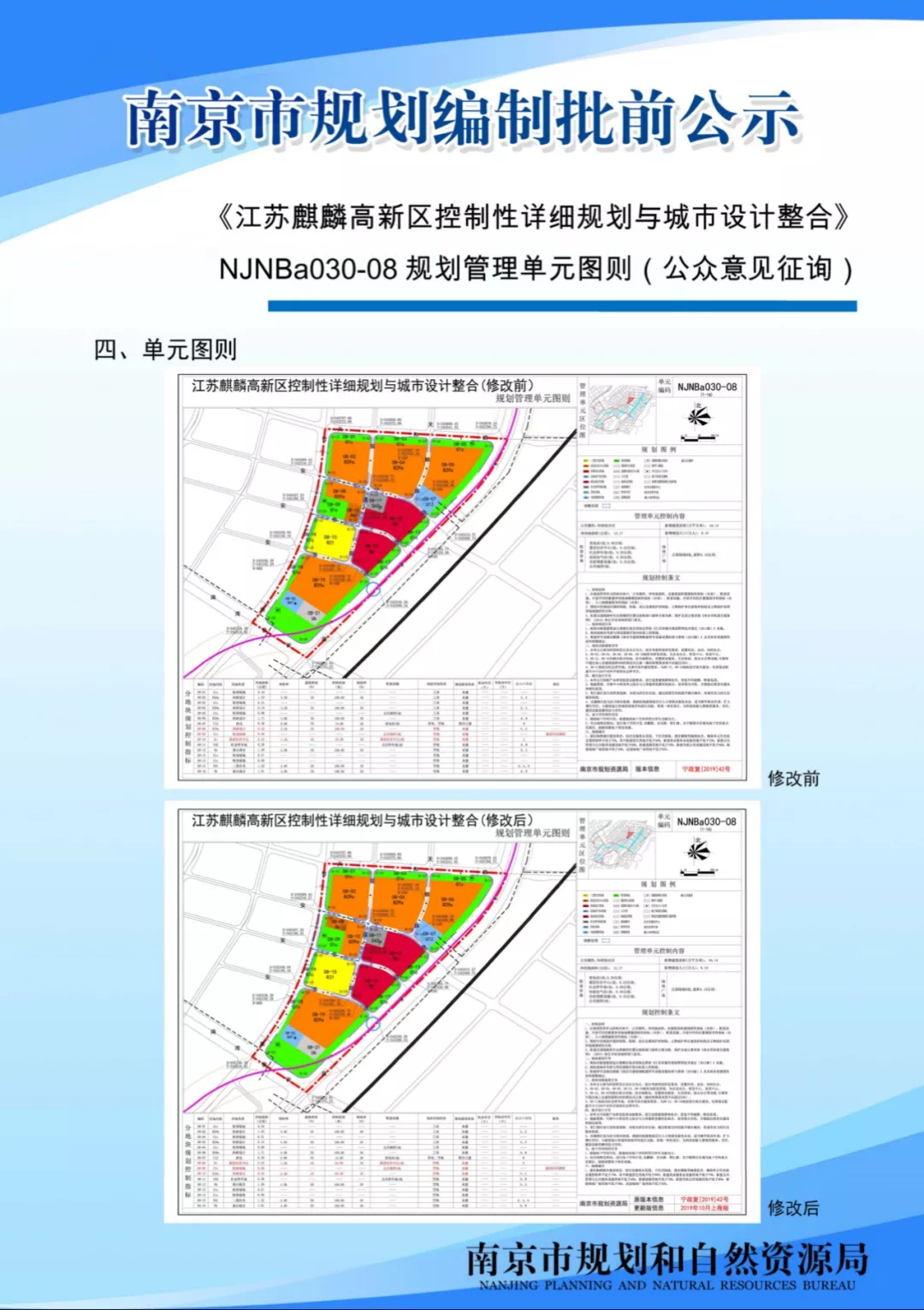 《江苏麒麟高新区控制性详细规划与城市设计整合》NJNBa030-08规划管理单元图则(公众意见征询)为推动片区发展,加快产业、设施等落地实施,拟对《江苏麒麟高新区控制性详细规划与城市设计整合》NJNBa030-08规划管理单元图则进行优化。现将图则成果向公众展示,广泛征询公众意见。