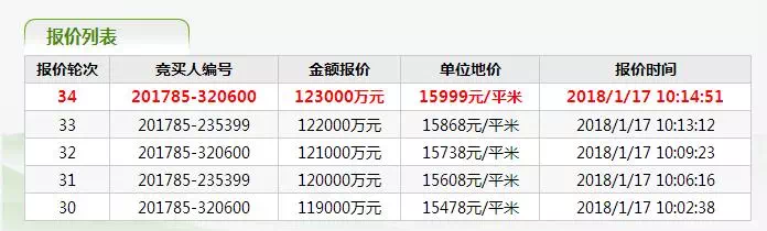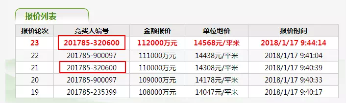 而此前一直与320600买家竞争的900097看似已暂时退出竞价,而现在就换235399买家再出高价参与竞争,有趣的是,似乎每有“拦路虎”出现,这位新加入战场的320600买家每一次都会再出更高价硬生生拍下去,看样子这幅地块他势在必得!