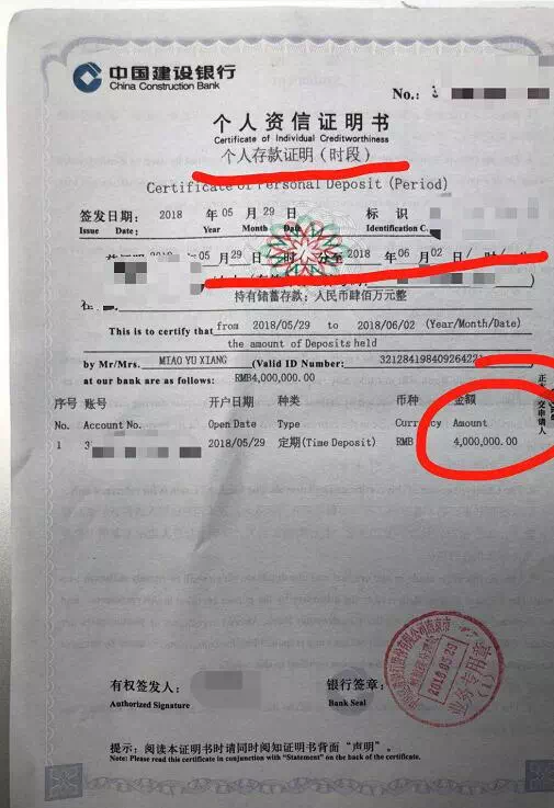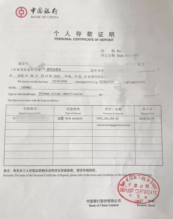 本人名下由南京市范围内银行出具的《存款证明》照片,自报名之日起冻结5天。