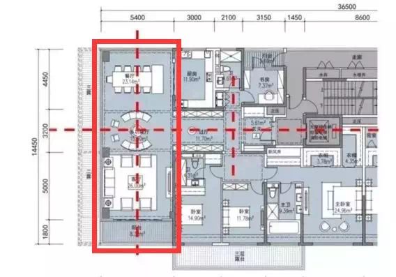 比如,城中豪宅中航金城1号,曾透露“想做大横厅”,最终因怕“水土不服”而放弃。但我们依然在它的180平米户型上看到“横厅被取消”的影子。