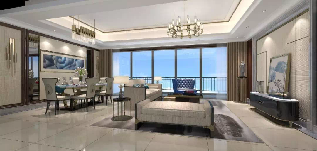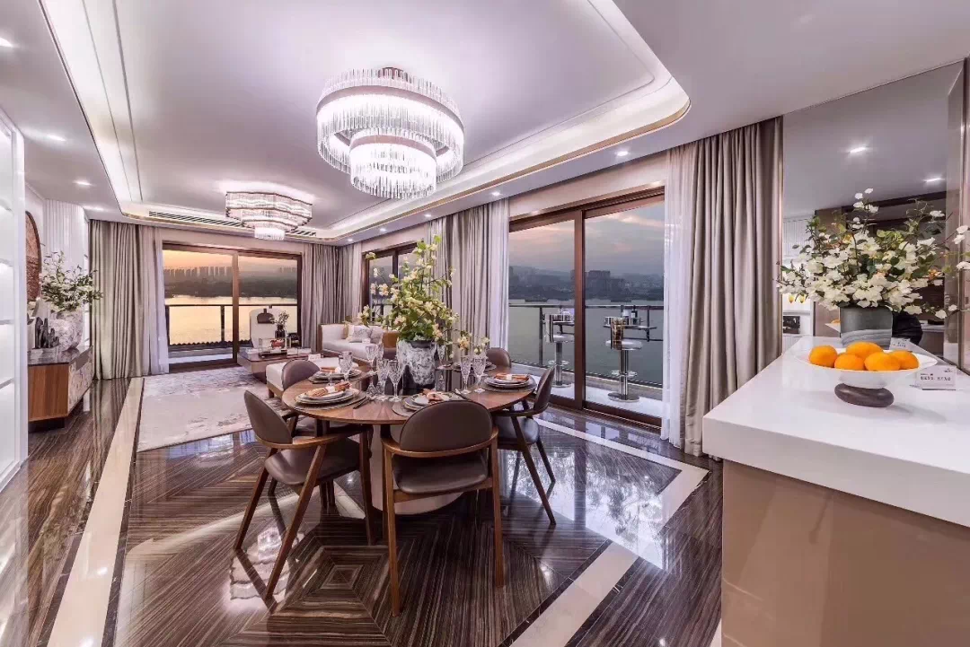 760平米户型拥有21.5米的超长横厅,包括客厅、餐厅和西厨吧台区,可谓壕出天际。