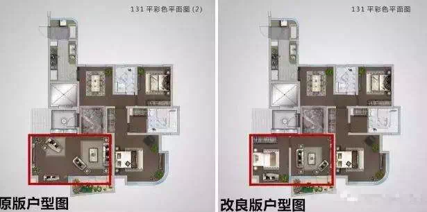 比如,曾经的“城东排名前列盘”京奥港未来墅。继131平米户型“两房变三房”后,后期入市的141平米户型也被迫取消了大横厅,由此“吐出”了一个房间,变成四房。