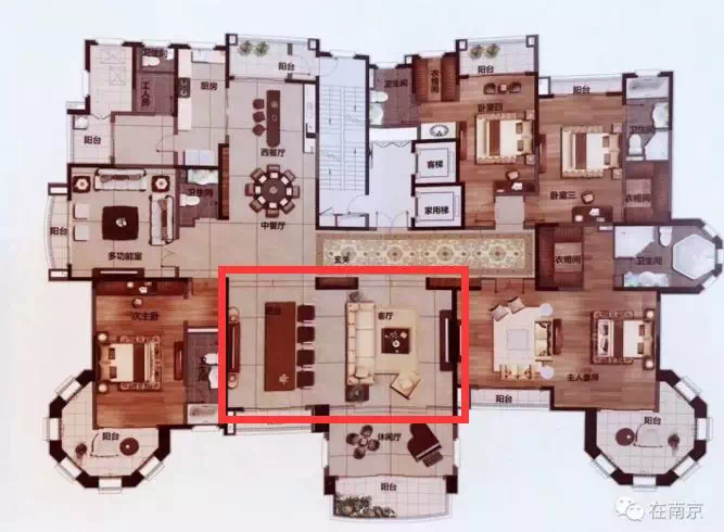 难怪有人调侃,在别的城市,豪宅的业主们都是躺在沙发上看风景。而在南京,高净值业主只能“躺沙发上看电视”。因为,南京豪宅大多都是沙发抵墙的竖厅设计嘛。