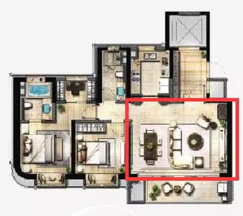 当然,为了尽量收纳最奢阔的横向观江视野,绿地黄浦滨江也付出了“代价”,那就是“牺牲”掉一个卧室。