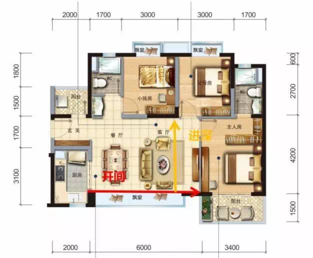 2、户型的动线设置合理,符合大多数国人的生活习惯。