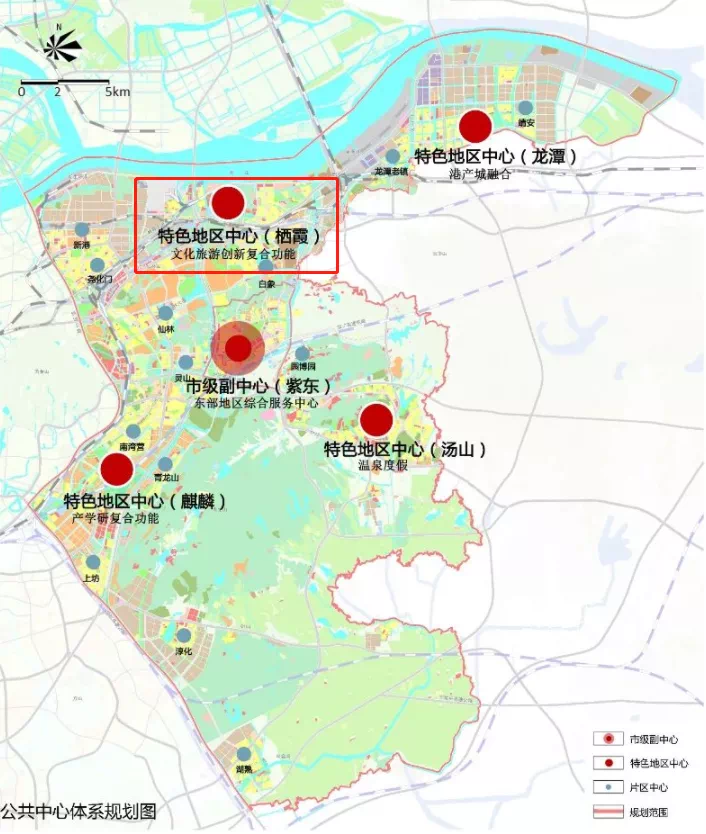 此外,今天紫东地区概念性设计曝光,其中再次强调了栖霞山文旅科创领航区的定位。根据规划,未来紫东地区将构建“一主、四辅、多片”的公共中心体系,其中面向宁镇扬一体化,建设栖霞、麒麟、龙潭、汤山四个具有区域影响力的特色地区中心,栖霞便是其中的文旅科创区域。