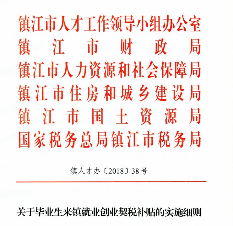 根据《关于鼓励和支持高校毕业生来镇就业创业若干政策的意见》(镇办发[2018] 59号)规定,现就契税补贴政策条款作具体解释并制定实施细则如下。