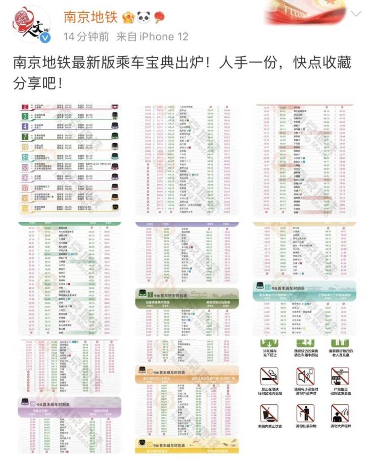 刚刚“南京地铁”官方微博发布2023年南京地铁运营时间表快点收藏分享吧12条地铁线路运营时间表来源:南京地铁、南京发布…