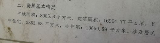 征收占地面积:8985.6平方米,建筑面积16904.77平方米,其中住宅385.88平米方,涉及被征收居民95户,工企单位7家。