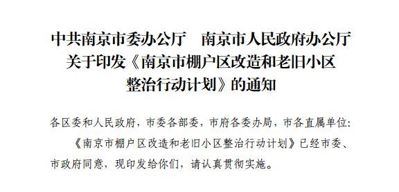 今年是南京实施《南京市棚户区改造和老旧小区整治行动计划》排名前列年,未来3年,全市要改造418个棚户区,涵盖11万多户、936个老旧小区,确保到2020年年底。