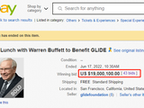 截至美国东部时间6月17日周五22:30(北京时间6月18日10:30),最后一届“巴菲特慈善午餐”拍卖结束正式结束,据eBay官网,此次“巴菲特慈善午餐”总计有43次竞标,最终的中标者出价为19000100…