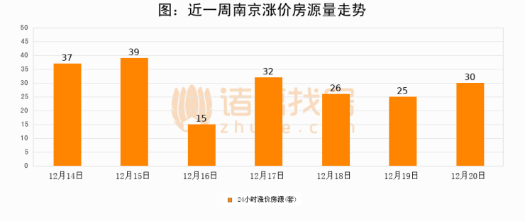 根据诸葛找房数据显示,南京24小时涨价房源量为30套,较12月19日增加5套,环比上涨20%。与此同时,涨价房源占比小幅扩大,业主信心有所提升。