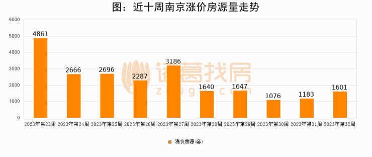 从调价房源来看,第32周南京涨价房源1601套,较上周上涨35.3%。与此同时,32周涨价房源占比提升0.6个百分点,业主信心持续恢复。