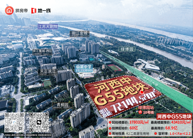 河西中绿博园G55地块自挂地以来,深受市场关注,该地块西侧临近绿博园公园、滨江岸线,是河西近年来少有的优质板块的优质地块,用地面积达72144.52㎡。G55地块挂牌起始价60亿元,最高限价68.9亿元,起拍…
