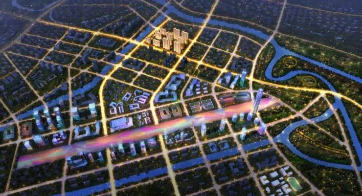 作为主城最后一批可供大规模开发的黄金地,南部新城大校场板块内规划约2.6公里长的跑道城市文化客厅,以机场跑道为中轴,规划六座超150米地标群落,打造城市天际线。