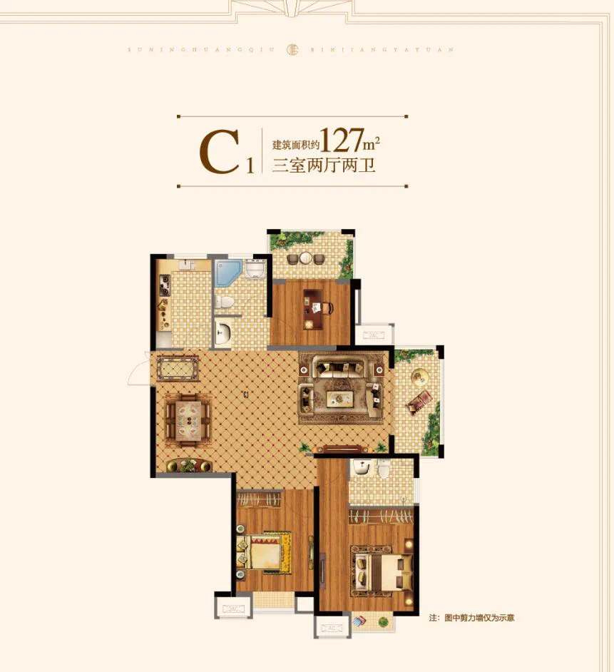 建面约127㎡阔绰三房,通透大开间,横厅阳台享一线滨江美景;主卧次卧相邻,方便家人关怀照料;主卧套房设计,休闲起居互不干扰,L型厨房邻餐厅,美味出炉即刻分享。