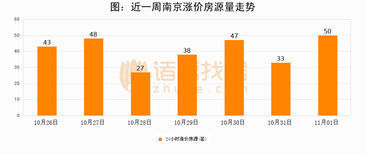 根据诸葛找房数据显示,南京24小时涨价房源量为50套,较10月31日增加17套,环比上涨51.5%。与此同时,涨价房源占比小幅扩大,业主信心有所提升。