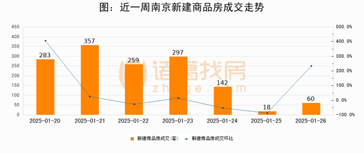【南京成交日报】01月26日新房成交60套、二手房197套;涨价房源9套