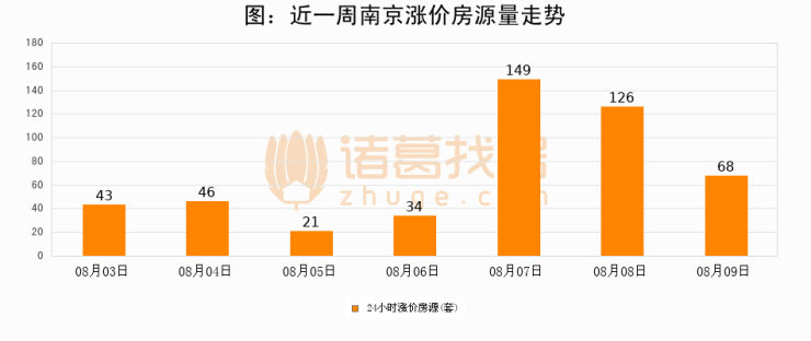 根据诸葛找房数据显示,南京24小时涨价房源量为68套,较08月08日减少58套,环比下降46%。与此同时,涨价房源占比小幅回落,对于购房者来说是一个入市窗口期,购房者可抓住时机入市。