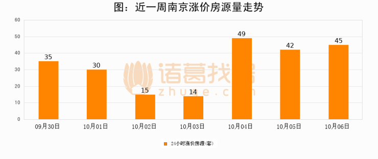 根据诸葛找房数据显示,南京24小时涨价房源量为45套,较10月05日增加3套,环比上涨7.1%。与此同时,涨价房源占比小幅扩大,业主信心有所提升。