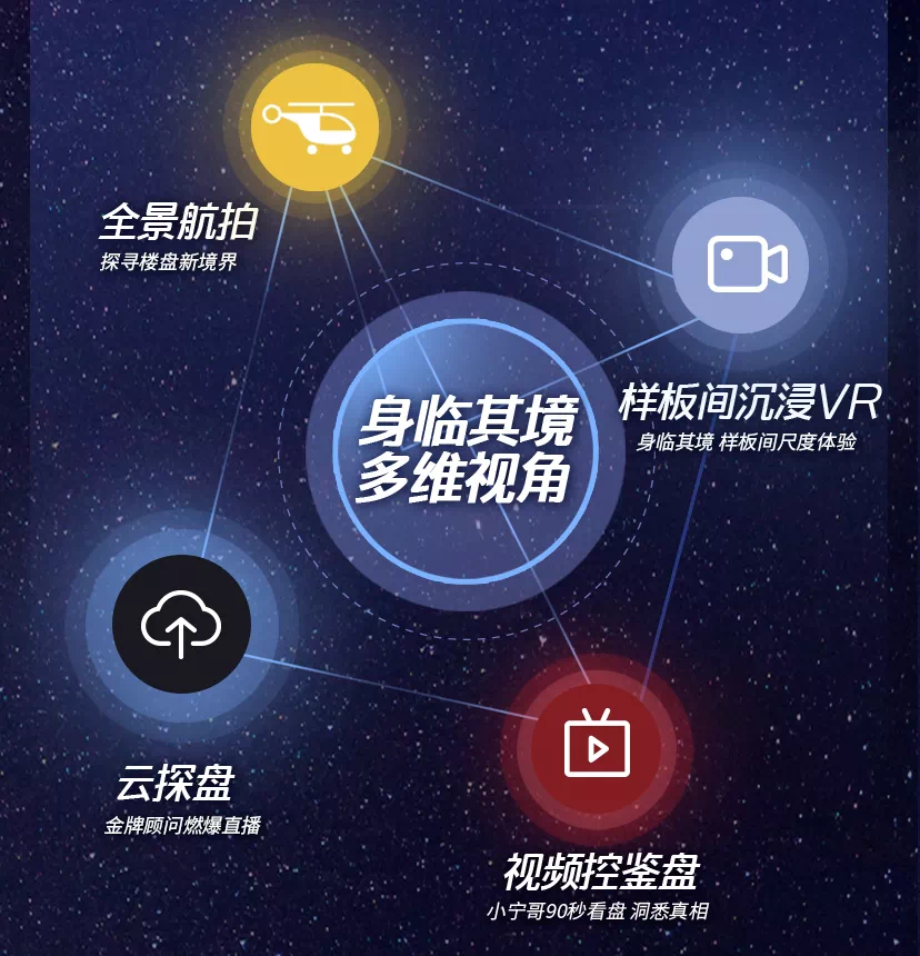 搜狐焦点&拼房帝联合推出全景航拍+样板间VR+金牌顾问直播+小宁哥90秒鉴盘视频,四大途径全景覆盖,沉浸体验,价值传播,全面提升楼盘影响力。全景航拍全景航拍,板块楼盘的位置分布、周边环境与配套设施一目了然,探寻楼盘新境界。样板间沉浸VR样板间VR让购房人身临其境,更为直接的感受样板间尺度。云探盘金牌顾问燃爆直播,购房者不用去售楼处,就能看到专业的置业顾问最详细的介绍。视频控鉴盘小宁哥亲身实探,短视频90秒看盘,从周边配套到实景样板间,洞悉楼盘真相。2科技提升产品力拼房帝,南京买房人必备的购房小程序。