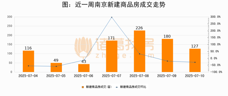 【南京成交日报】07月10日新房成交127套、二手房291套;涨价房源81套