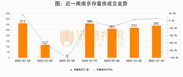 从存量房来看,2025年07月10日南京存量房单日成交291套,比昨日增加19套,环比上涨7%。从近一周存量房成交来看,南京存量房日均成交套数为223套,07月10日单日成交291套,高于近一周平均水平30.5%。