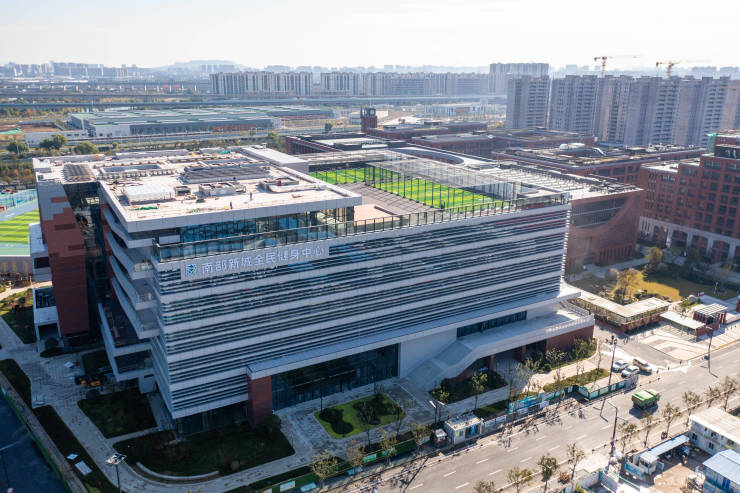 11月19日,位于承天大道的南部新城全民健身中心全貌显现,楼顶两个笼式足球场也已完工。目前该项目已进入全面收尾阶段,计划年内建成,将为市民提供新的运动健身及大型活动场所。南京日报/紫金山新闻记者段仁虎摄…