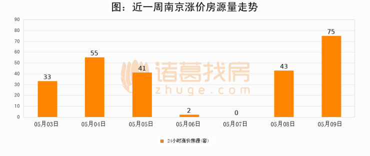 根据诸葛找房数据显示,南京24小时涨价房源量为75套,较05月08日增加32套,环比上涨74.4%。与此同时,涨价房源占比小幅扩大,业主信心有所提升。