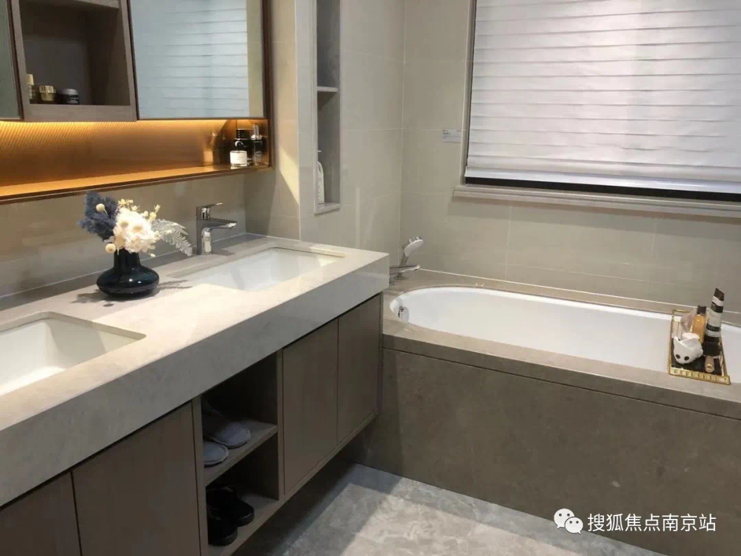 主卧非常豪华,有步入式的衣帽间、双台盆、淋浴室和大浴缸。主卧配备的也是智能马桶。