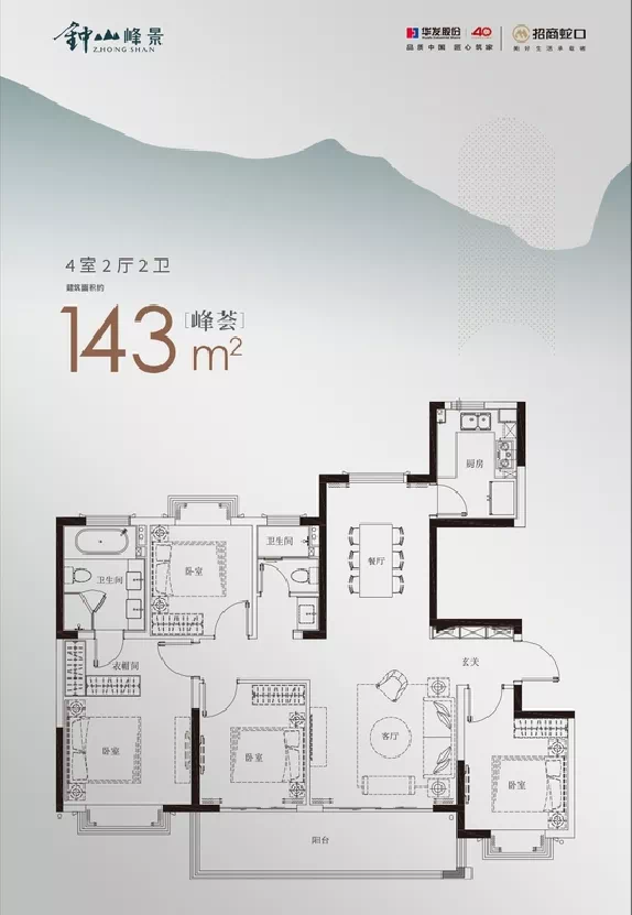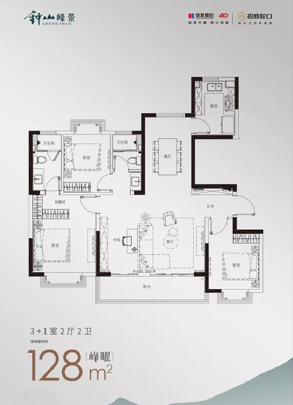 128平户型做了6米开间的横厅,阳台也非常宽敞。