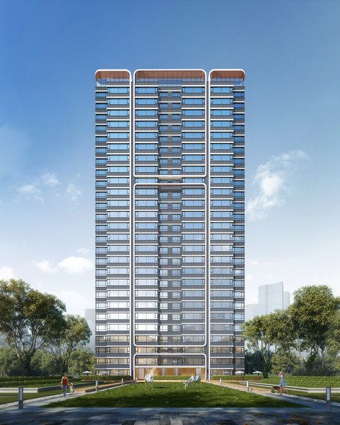 以国际CBD豪宅特有的设计语言:玻璃幕墙+光影线条,构筑时尚的天幕建筑作品。外立面以蓝灰色玻璃窗,辅助深色线条,构成一个个充满序列感的流线造型,打造出“流动”线型现代简约立面风格。整体外立面呈中轴对称,元素上通过“C”型飘板、铝线条相结合的设计,营造出现代简约、气派典雅的立面质感。同时位于城市道路一隅的主入口,立面挑板线采用标志性的圆角曲线,动感、圆弧的流线,整体立面犹如微边框数字全屏,顺应科技美学的当代趋势,以国际前沿的弧角流线,构成一个个充满序列感的流线造型,打造出“流动”线型现代简约立面风格,创作江北晶幕立面建筑封面作品,在时尚与品质碰撞下,倒映城市繁华肌理。