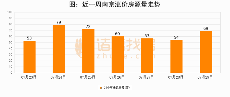 根据诸葛找房数据显示,南京24小时涨价房源量为69套,较07月28日增加15套,环比上涨27.8%。与此同时,涨价房源占比小幅扩大,业主信心有所提升。