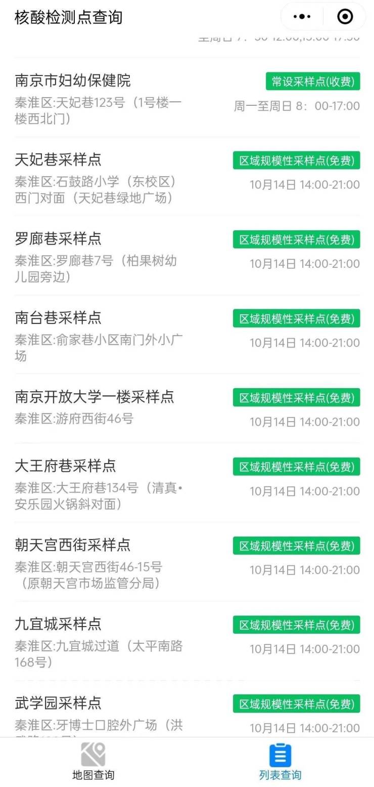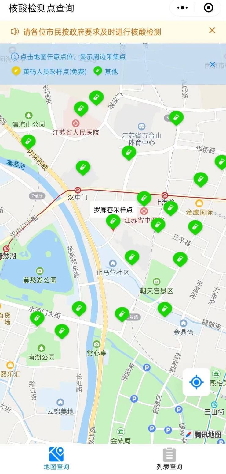一键速查!南京市核酸检测采样点地图上线!