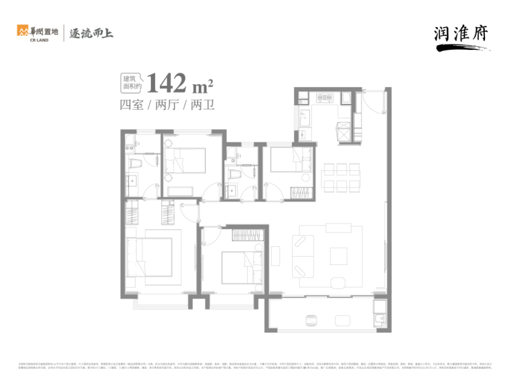 建面约142㎡户型满足改善客群的置业需求,3+X两厅两卫设计,可以由客户自己选择要不要北向次卧,家里人口多的可以和开发商签订合同做成房间,想要餐客厅空间更宽敞一些的,可以直接扩展成餐厅面积。