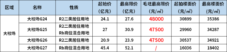 大校场此次挂出4幅涉宅用地,1幅未设毛坯限价,另外3幅毛坯限价较高4.8万/㎡,相较此前板块较高毛坯限价的三金G02(毛坯限价4.58万/㎡),再度上涨2200元/㎡!