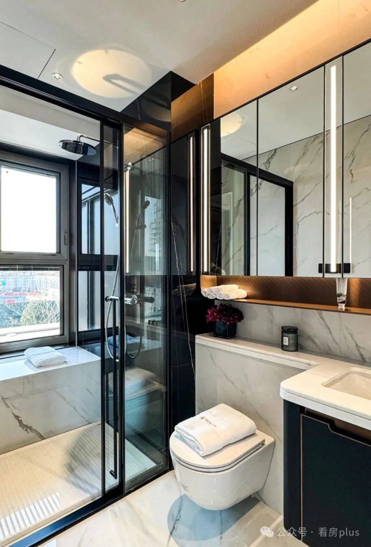 另外还有一点,三个卫生间都是明卫,主要是老人房的配套卫生间,以前大多数这个卫生间都是暗卫,现在越来越多的豪宅项目都在规避了。