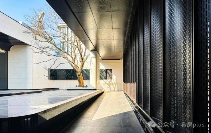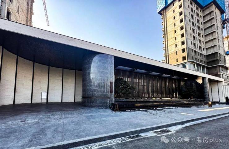 在外立面上,源尚丹若府的南向窗墙比只有约0.49,运用深灰色石材、灰色干挂铝板以及金属格栅,搭配古铜色、铝色、白色线条,打造流畅的曲线外立面,颜值非常高。