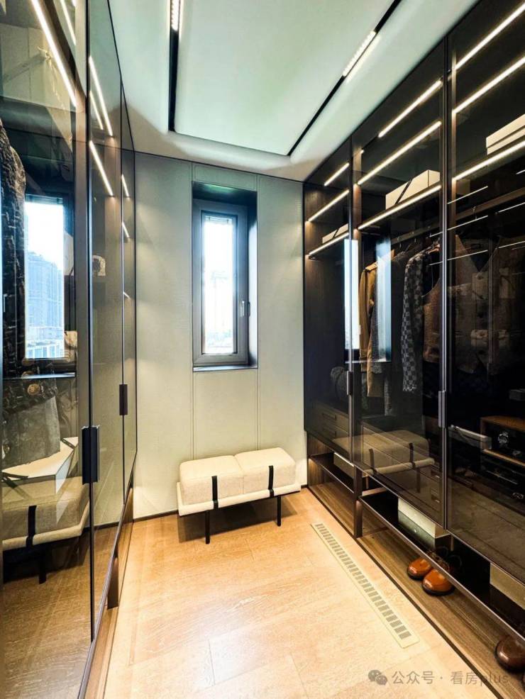 亮点最大的是衣帽间,不是L型的而是步入式的,这仪式感一下子就上来了,更关键的是衣帽间内居然还有窗户!