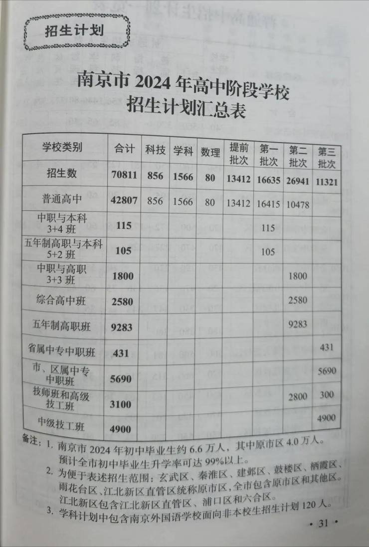 6月13日,2024年《南京市中考指南》新鲜出炉。今年我市初中毕业生约6.6万人,其中原市区4.0万人。预计全市初中毕业生升学率可达99%以上。