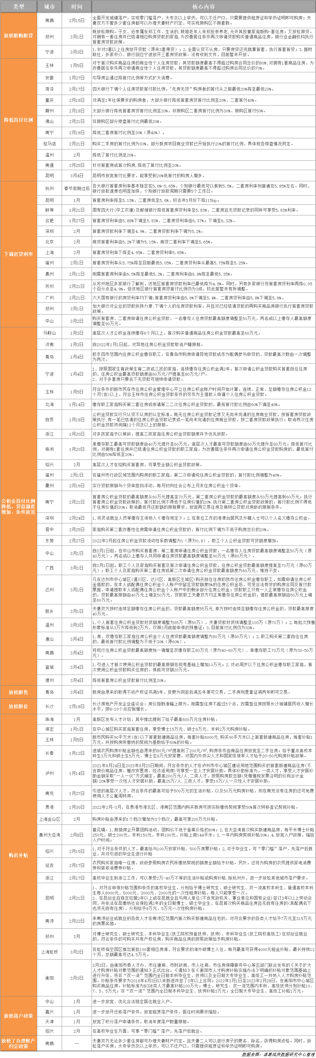 据诸葛找房统计数据,截至3月8日,今年共有55个城市对楼市政策进行了松绑。政策大部分从需求端出发,内容涵盖放松限购限贷、降低首付比例、下调房贷利率、放宽公积金贷款、放松限售及购房补贴等层面。