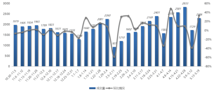 上周,南京全市二手房成交2306套(含高淳、溧水),环比上涨33.4%,其中主城九区成交量2174套。从成交走势来看,成交量在经历了短暂下行后,再次回归4月中旬水平,环比涨幅明显。