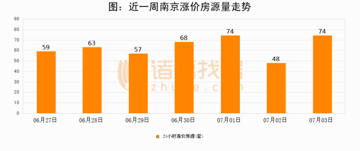 根据诸葛找房数据显示,南京24小时涨价房源量为74套,较07月02日增加26套,环比上涨54.2%。与此同时,涨价房源占比小幅扩大,业主信心有所提升。
