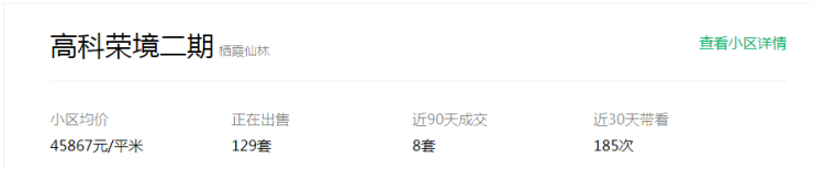 比如高科荣境小区均价已高达45867元/平,部分房源成交单价已突破5万/平!