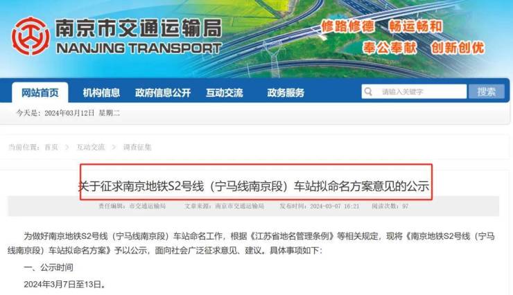 据报道,宁马城际计划2024年实现“桥通”“轨通”,2025年具备试运营条件、开始试运营!目前南京地铁S2号线(宁马线南京段)车站拟命名方案意见已经公示。