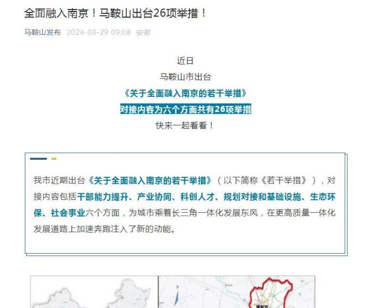 马鞍山正式出台《关于全面融入南京的若干措施》!