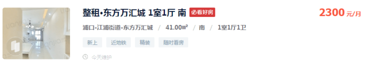 也有不少人选择在江北10号线沿线租房,但像东方万汇城一套41平的公寓,一个月租金就要2300元,差不多要和天曜星座的月供相当了。